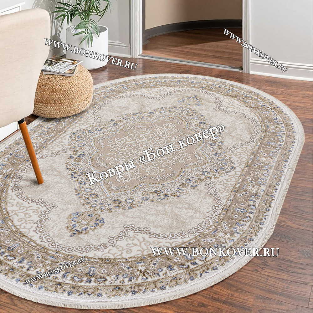 Турецкий Ковер Для Гостиной Медальон Дизайн 02 Овал станет гармоничным дополнением интерьера, оформленного в современном или классическом стиле. Мягкое, но прочное, ковровое изделие обеспечивает тепло- и шумоизоляцию, отличается длительным периодом эксплуатации, пожаробезопасностью, экологичностью и высокой износостойкостью, является отличной преградой от повышенной влажности в помещении и утеплителем для холодного пола. Благодаря качеству материалов, ковер не деформируется, сохраняет первоначальный вид под тяжестью предметов мебели. За его поверхностью легко ухаживать.