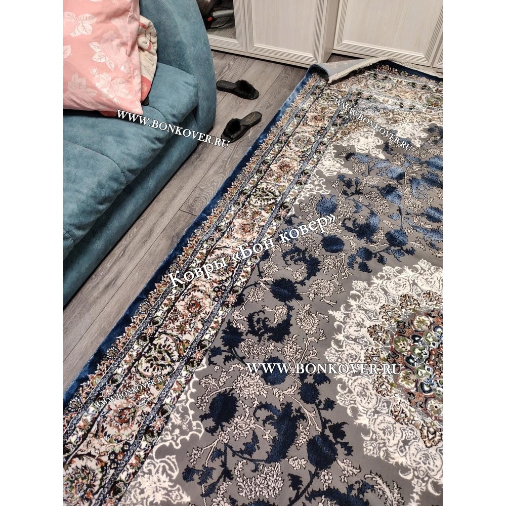 Шикарный Турецкий Ковер Для Медальон Дизайн 30573 Синий наполняет интерьер квартиры теплом и уютом, гармонично сочетает в себе изящество и красоту. Он соткан из износостойких материалов, комфортный и долговечный.